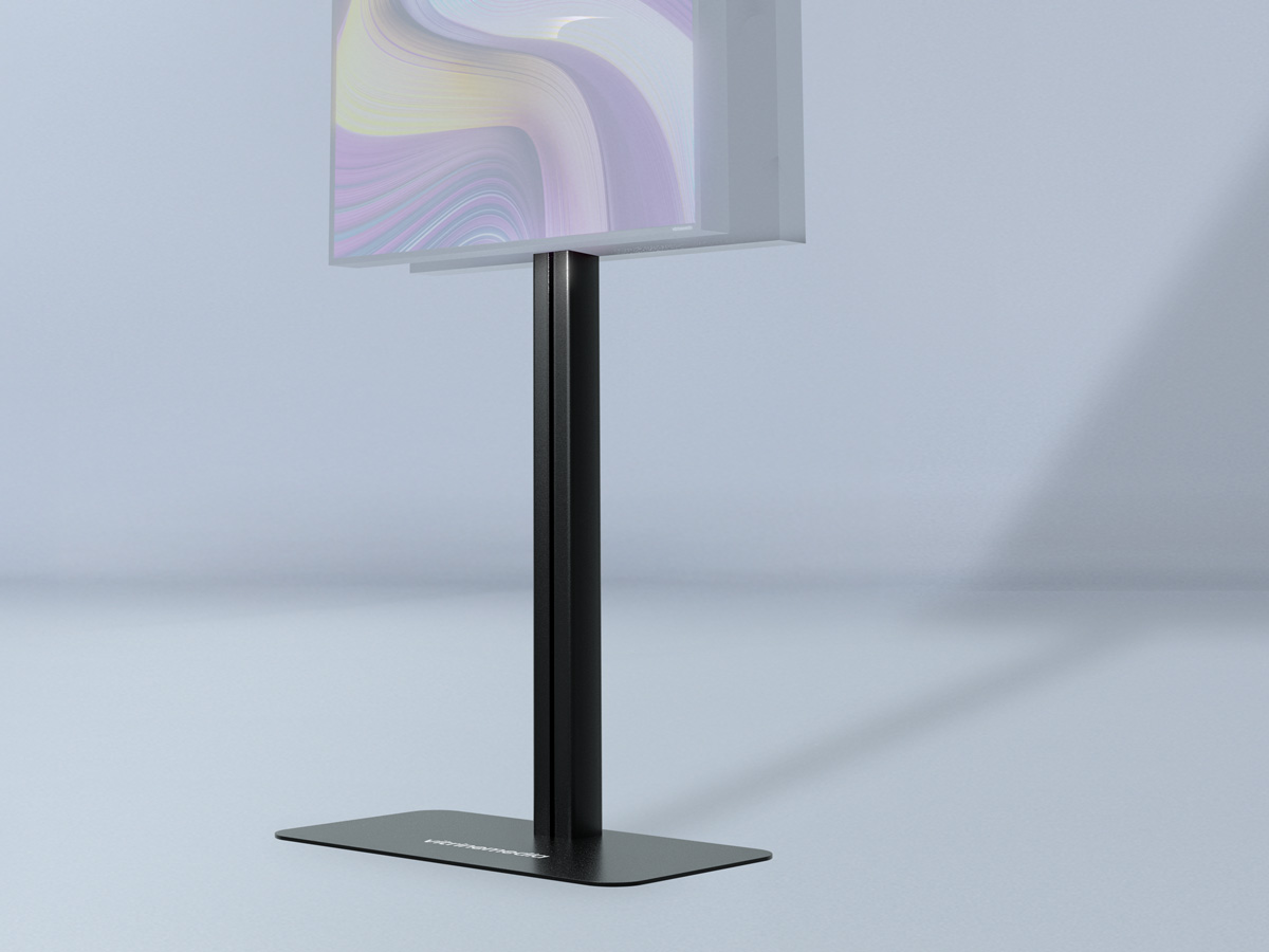 Detta snygga och välbyggda golvställ i svart för digitala skärmar passar från 49’’-55’’. Det är enkelt och smidigt att höja och sänka skärmen för perfekt läge.