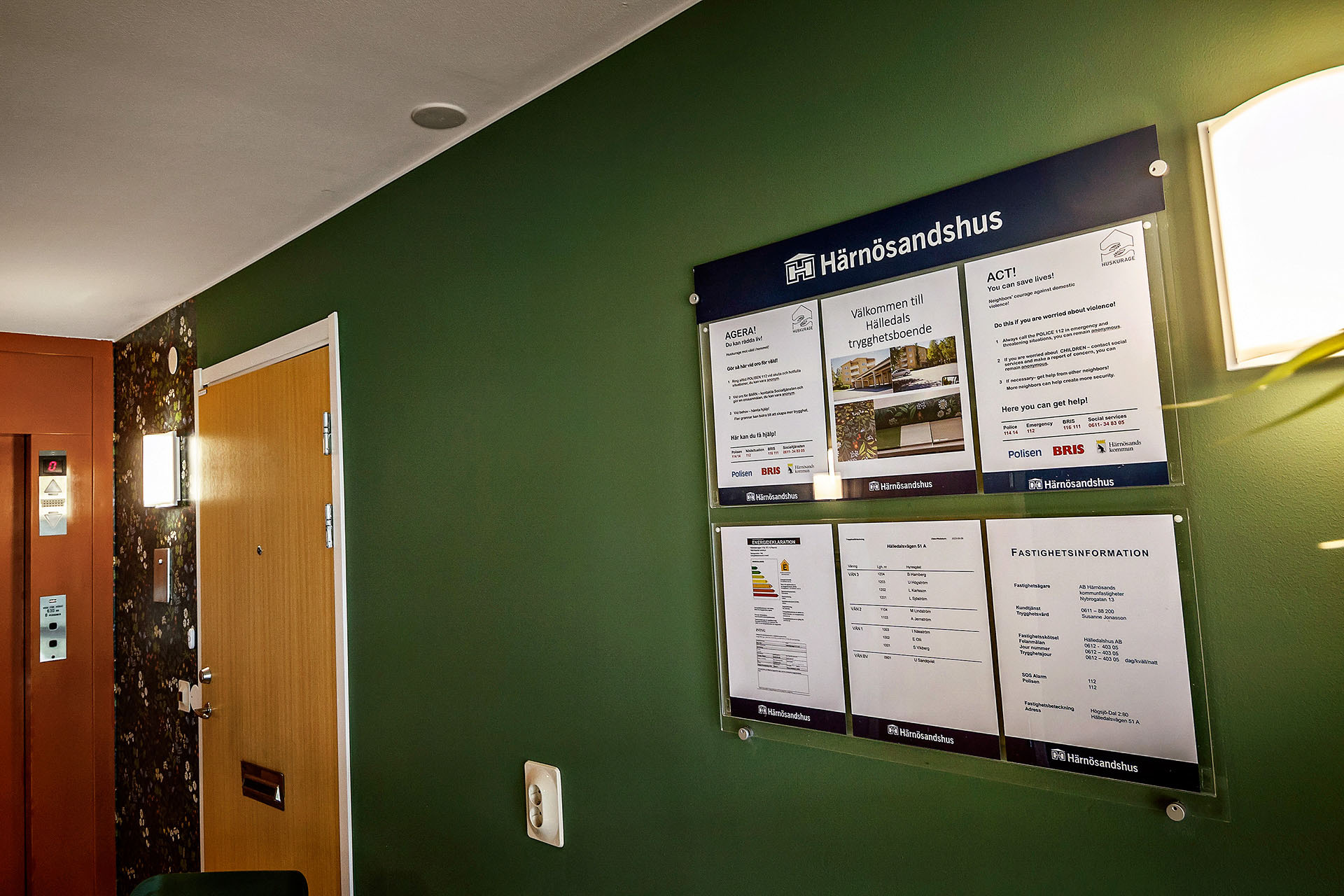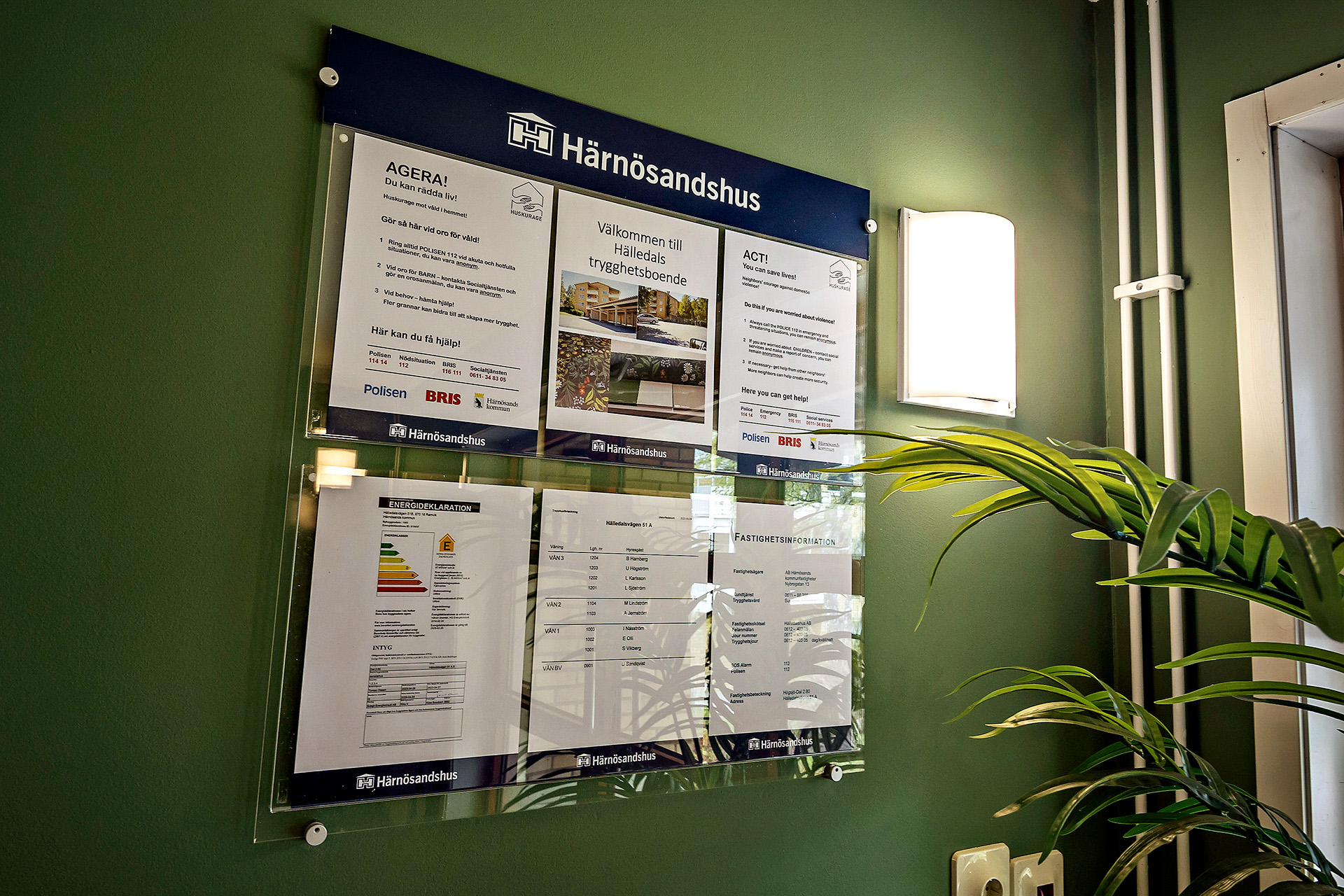 Härnösandshus. 145 st fina informationstavlor sitter monterade i trapphus och entréer runtom i Härnösand. Informationstavlorna är inte bara otroligt snygga utan är också mycket enkla att sköta. Det går snabbt att byta ut och hålla uppdaterade.
