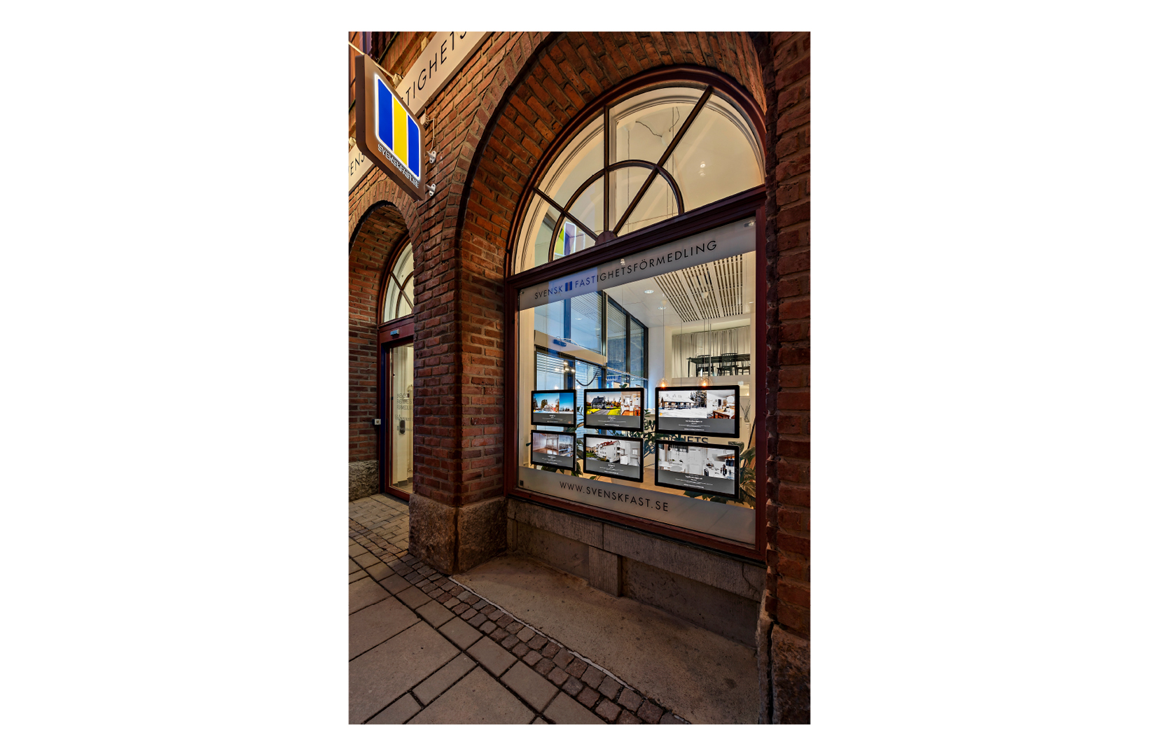 Att passera Svensk Fastighetsförmedling i Östersund går nog ingen obemärkt förbi. I mäktiga tegelvalv sträcker sig fönstren upp mot skyn och här skyltas på ett stort och tydligt sätt kampanjer och objekt till salu. Väl inne i receptionen ser man tydligt på de stora 3D-logotyperna vart man har hamnat.