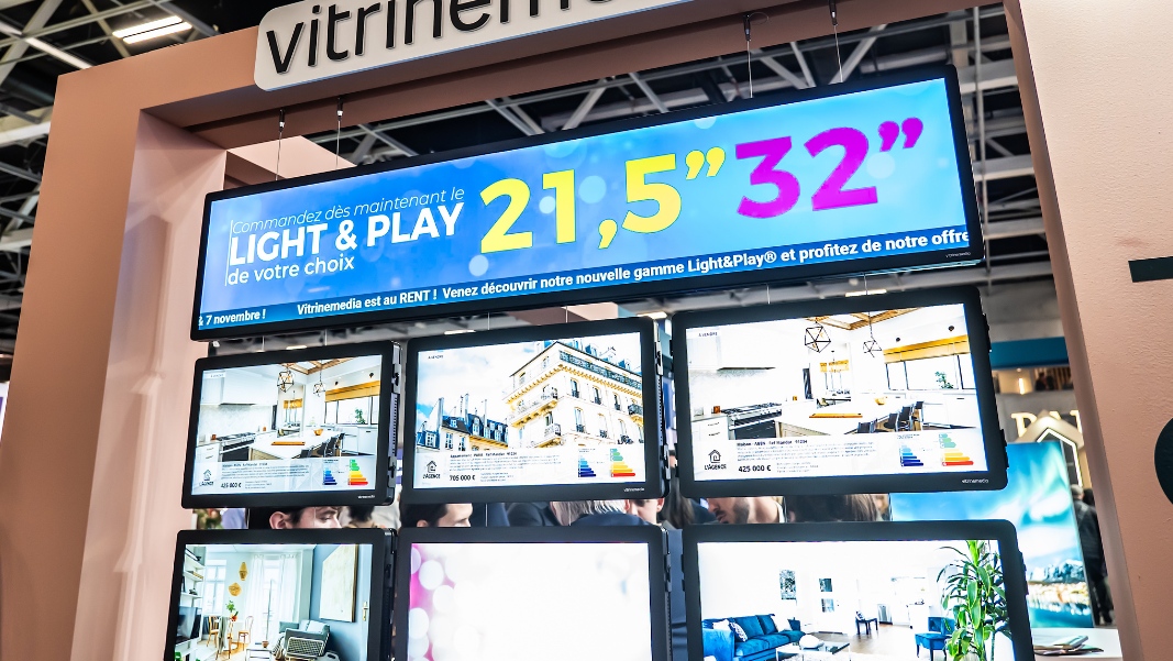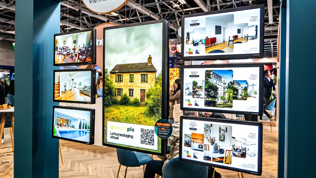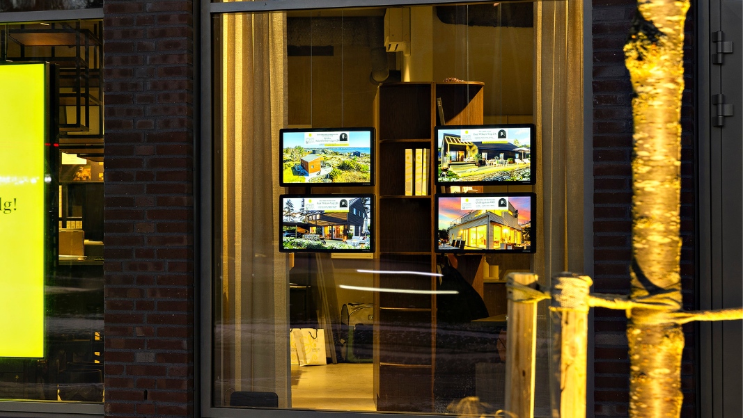 Light&Play passar perfekt för mäklarkontor som vill visa bostadsobjekt på ett stilrent sätt – utan att skärmarna tar över hela fönstret.
