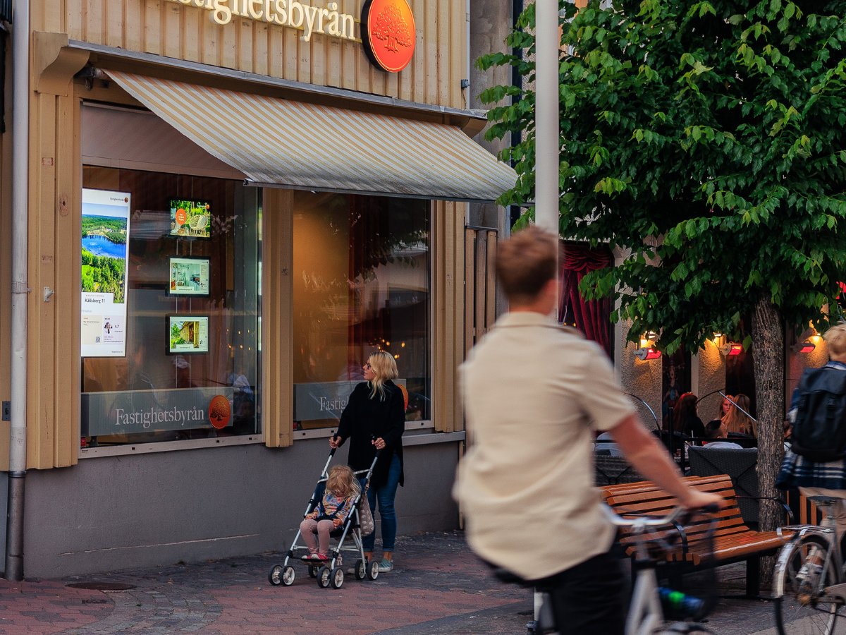 Med digital skyltning kan du visa flera objekt, kampanjer och budskap – utan att överbelasta skyltfönstret. Innehållet växlar automatiskt och presenteras i ett lugnt tempo.